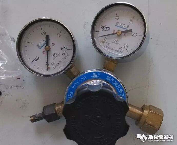 之前使用NPD,仪器连着开了多天,发现基线越来越差,看了一眼空气钢瓶,发现一级减压阀还有2个MPa的余气,但是二级减压阀一般都是放在0.4MPa,此时竟然只有0.3MPa,尝试加大空气钢瓶上二级减压阀的压力,没有用;此时怀疑到可能是减压阀有问题了,取下来之后发现,不接钢瓶一级减压阀仍然有2MPa的压力。